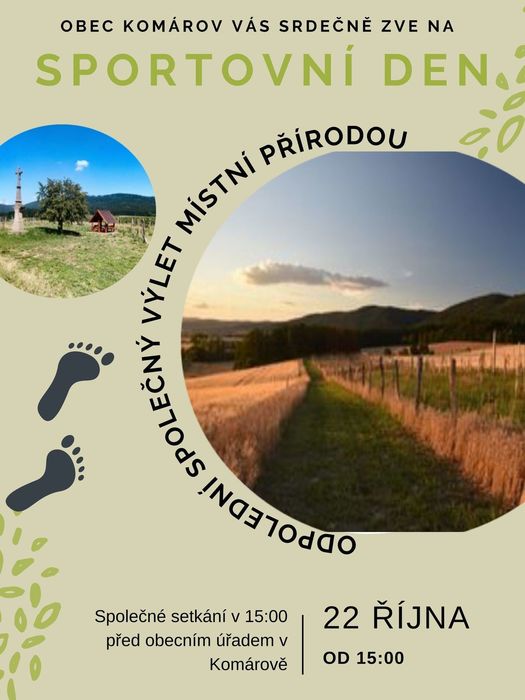 Obec komárov vás zve na SPORTOVNÍ DEN/SPOLEČNÝ VÝLET MÍSTNÍ PŘÍRODOU